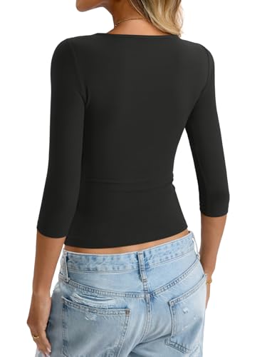 • Material: Womens 3/4 sleeve tops made of 88% polyester, 12% elastane, creamy soft, high stretch, like a second skin, lightweight and perfect for all day wear.