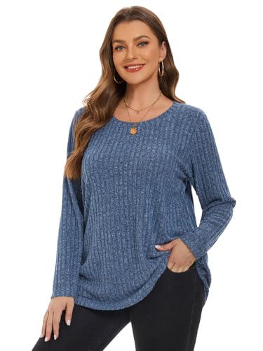 BELAROI Plus Size Tops for Women Tunic Shirts Long Sleeve Scoop Neck Casual Lightweight Sweaters Pullover Loose Fit 3