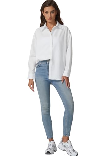 More information about QINSEN Oversized Button Down Shirts for Women Long Sleeve Striped Casual Blouse Cotton Tops