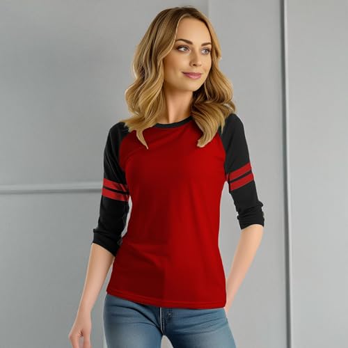 • Features: Womens Baseball tee shirts features ¾ Sleeve with distinctive two stripe design, a classic round neck, 4 thread overlock and double-stitched hem.