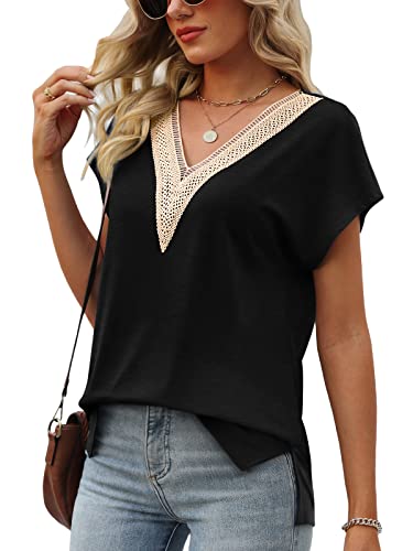 HOT ! Womens Cap Sleeve Summer Tops 2025 Trendy Tank Tops Lace V Neck Loose Fit Shirts