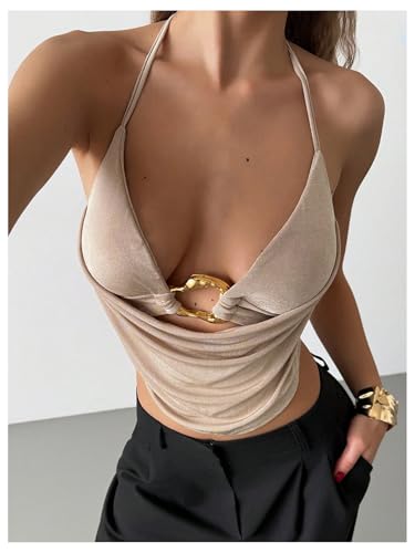 HOT ! Verdusa Women's Sexy Halter Going Out Tops Trendy Concert Festival Outfits Open Back Crop Top Clubwear