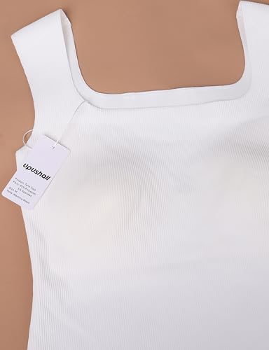 Women's Square Neck Seamless Tank Top with Built in Bras Sleeveless Cropped Tops 6