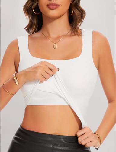 HOT ! Women's Square Neck Seamless Tank Top with Built in Bras Sleeveless Cropped Tops