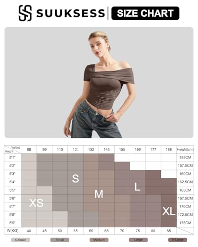 SUUKSESS Women One Off The Shoulder Summer Tank Tops Ruched Short Sleeve Shirts 6