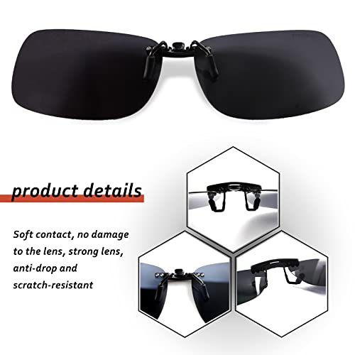 Polarized Clip on Sunglasses, UV Protection/Anti-glare, Small Metal Clip, Driving/Fishing/Outdoor, Unisex, Black 3