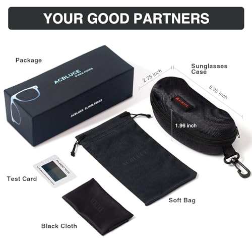 • Excellent HD Polarized Lens: 1.0mm Polarized Tac Scratch-Resistant Lenses, 100% Full Spectrum UV protection against the sun's harmful rays. ACBLUCE Polarized Lens delivers high contrast and crisp definition. Not only perfect for weekend adventures, but also an excellent choice for weekday commute.