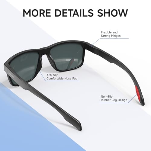 • Lightweight Design: The Polarized Sunglasses weigh only 22g/0.77oz, can reduce the pressure on your nose, there is no sense of restraint, you won't feel discomfort even after wearing them for a long time.