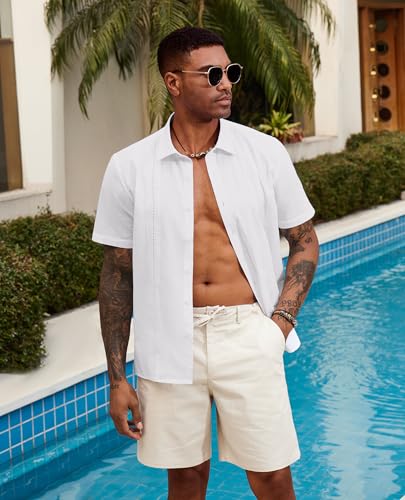 Guayabera Linen Shirts for Men Short Sleeve Button Down Shirt Hawaiian Shirt Cuban Summer Shirts Beach Shirts 6