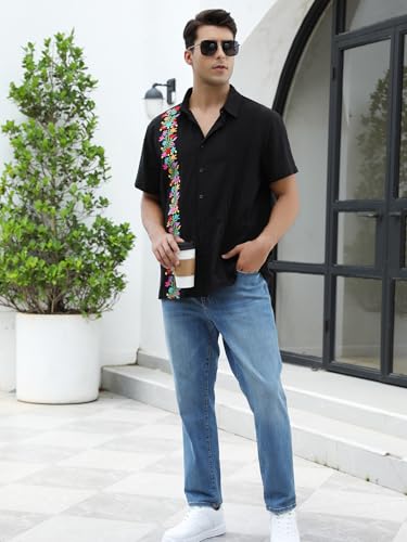 Mexican Shirts for Men Guayabera Embroidered Traditional Fiesta Button Up Collared Short Sleeve Shirt 1