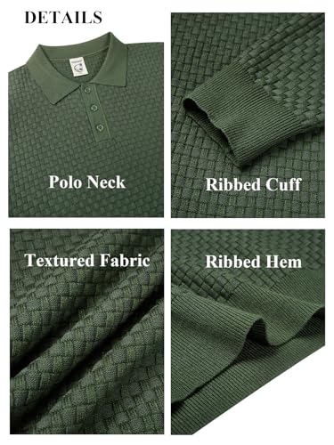 Hardaddy Men's Knit Polo Shirts Long Sleeve Button Up Pullover Sweater Textured Casual Collared Tops 4