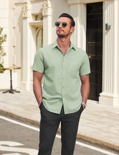 • 【Lightweight & Comfortable Fabric】This mens short sleeve dress shirt made of fabric that is non-shrink, lightweight, breathable, skin-friendly, provide you feeling cool and comfortable all day.