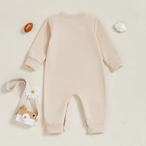 Newborn Baby Boy Girl Fall Outfit Romper Long Sleeve Football Embroidery Onesie Jumpsuit Bodysuit Cute Infant Clothes 2