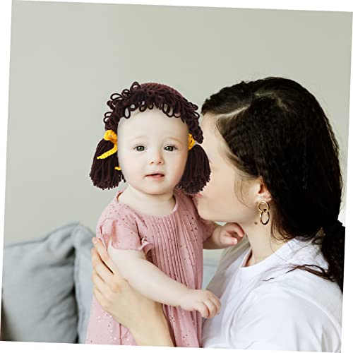 Winter Hat Knitted Woolen Yarn Beanie with Wig Design Cute Knit Hat for Boys for Daily Wear and Photos Years Coffee 7
