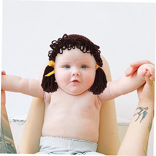 HOT ! Winter Hat Knitted Woolen Yarn Beanie with Wig Design Cute Knit Hat for Boys for Daily Wear and Photos Years Coffee