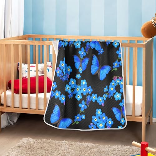 Burbuja Blue Butterflies Baby Blanket for Boys Girls, Nursery Soft Warm Swaddling Receiving Baby Blankets, 30x40 in Toddler Blanket 1