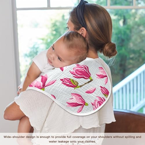 J JOYSAY Magnolia Flower LightGray Baby Burp Cloths for Boys Girls Large 22''x11'' Cotton 4 Layer Cloth Baby Essentials for Boy Spit Up one sizex2 4