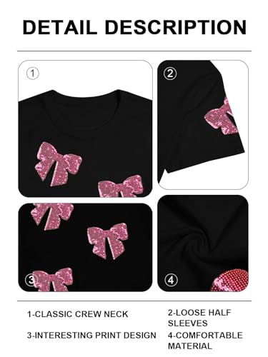 More information about Womens Bow Shirt Coquette Aesthetic Shirts Cute Sequin Graphic Tees Trendy Pink Bow Ribbon Short Sleeve Tee Tops