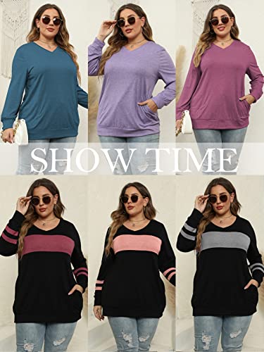 ROSRISS Plus-Size-Tops for Women Long Sleeve V Neck Shirts Oversized Pockets Tunics 3