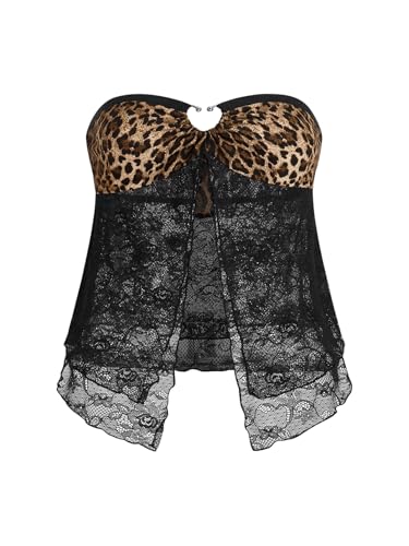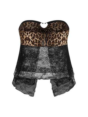 HOT ! SweatyRocks Women's Sexy Leopard Print Tube Top Y2K Lace Split Strapless Going Out Crop Tops