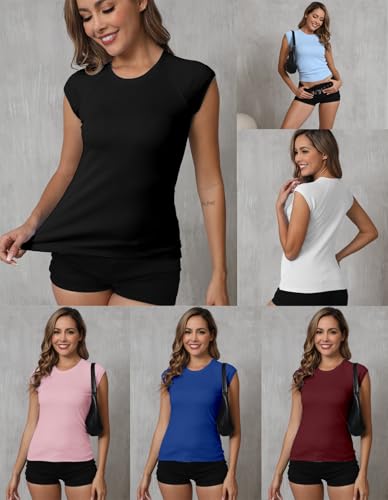 • Casual Basic Cap Sleeve Shirts: This basic womens cap sleeve shirts, the cap sleeve design offers clever arm coverage, striking the perfect fashion balance between short sleeves and sleeveless styles, crew neck, cropped length, basic summer tops for women, include green and black top, cute and trendy, fits wear in different occasion