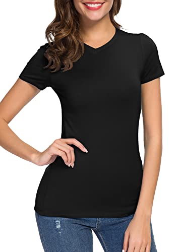 Urban CoCo Women's Basic Slim Fitted Tee Tops Short Sleeve Stretchy Bodycon V-Neck Tight T-Shirt 6