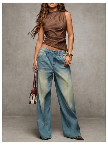 HOT ! MakeMeChic Women's Mock Neck Sleeveless Tank Top Ruched Asymmetrical Shirt Tops