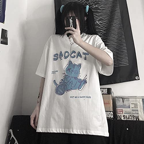 HOT ! Women's Goth T-Shirt Summer Graphic Harajuku Gothic Creepy Cat Print Novelty Short Sleeve Top
