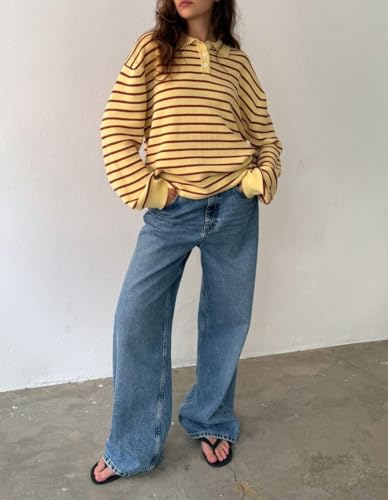 More information about Women Y2K Striped Lapel Polo Shirt Long Sleeve Pullover Sweatshirt Oversized V Neck Color Block Tee Streetwear