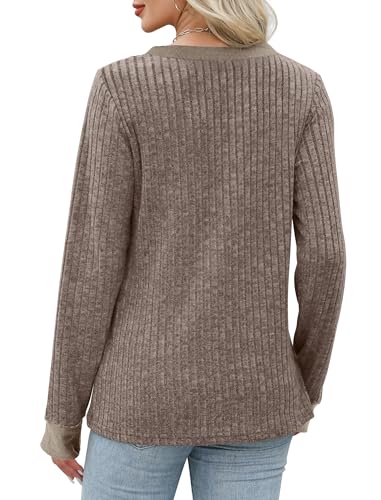 SAMPEEL Women's V Neck Color Block Long Sleeve Shirts–Casual Fall Tops, Lightweight Tunic Sweaters Fashion Outfits 2025 2