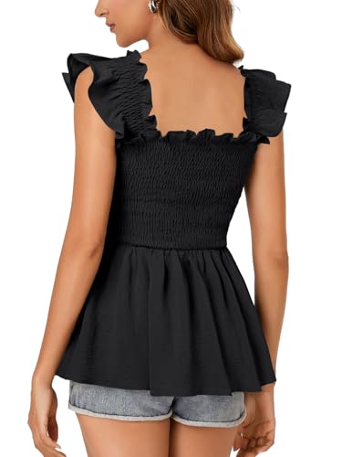 More information about LYANER Women's Square Neck Ruffle Cap Sleeve Smocked Peplum Top Babydoll Shirred Blouse Cami Tank