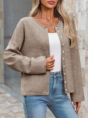 • Trendy Design Features: Crew neck, multiple buttons front, long sleeve, open front, loose fit. Features roll collar, roll cuffs, and ribbed hem for a textured look. The functional front buttons let you wear it open or closed as you well. The button up sweaters for women is a must-have style in 2025!