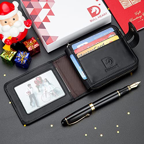 HOT ! bill heart Men Wallet with Zipper Genuine leather Bifold Purse for Mens ID Window and Coin Pocket…