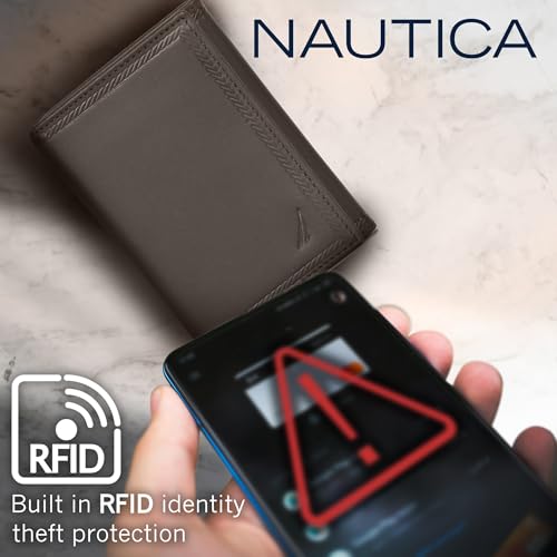 Nautica Men's Trifold Wallet | RFID Blocking Protection | ID Window | Card Slots | Genuine Leather | Durable 3