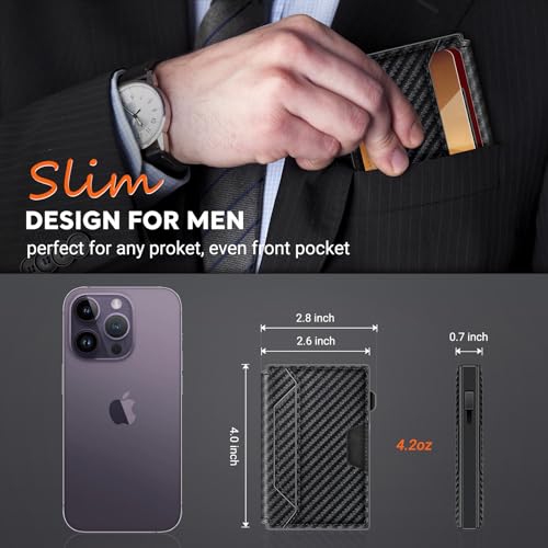 Pop-Up Wallet for Men - Father's Day Gift- Slim Metal RFID Blocking Card Holder, Holds 10 Cards with Money Clip & Magnetic Closure (Carbon Fiber) 4