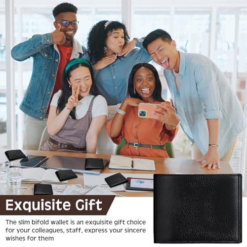 10 Pcs Leather Wallet Bulk for Men Employee Thank You Gifts PU Slim Bifold Wallet Set Nurse Teacher Gifts for Men(Black) 6