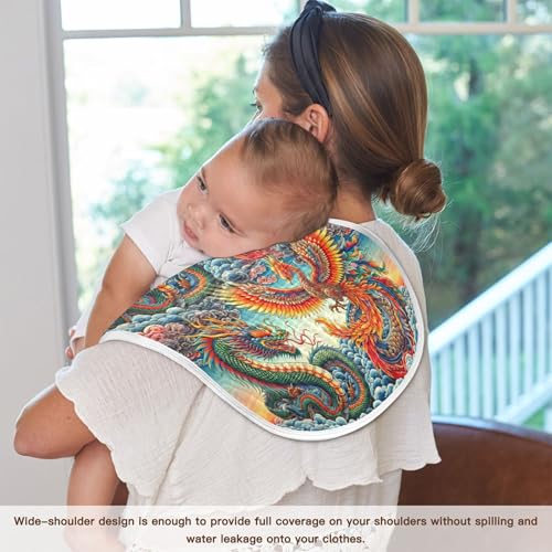 Kigai Dragon and Phoenix Baby Muslin Burp Cloths 4 Pack, Soft 4 Absorbent Layers Cotton Burp Rags for Newborn Girls Boys 5