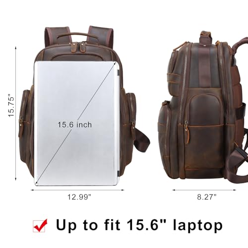 TIDING Men's Vintage Leather Backpack 15.6" Laptop Bag Large Capacity Business Travel Hiking Shoulder Daypacks 6