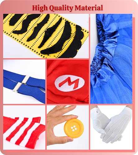 • Authentic Design: The costumes for women faithfully captures the iconic look of the character, making it perfect for fans and enthusiasts. From the vibrant red hat to the carefully designed black mustaches, each accessory reflects the attention to detail in replicating super bro's appearance.