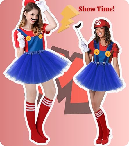 • Value for Money: With a comprehensive set of accessories including the red hat, black mustaches, white gloves, big yellow buttons, blue tutu skirt, blue elastic suspenders, and red & white soccer socks, this costume for women offers excellent value for your money. You get a complete ensemble at an affordable price.
