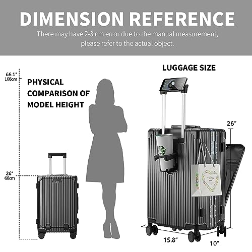 • Multifunctional Suitcase: The luggage also features a built-in USB port and Type C port and an internal power bank compartment for easy charging on the go (Power bank not included).Hidden folding cup holder on the back of the suitcase, aluminum alloy handle design mobile phone holder, and hook on the side of the suitcase, allowing you to easily enjoy every trip.