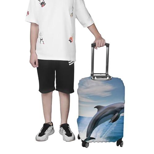 HOT ! Jumping Up Dolphins Luggage Cover, Washable Elastic Suitcase Cover Protector Fit 18-32 Inch Luggage