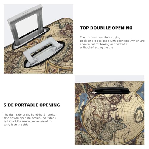 • Material: This Ancient Map World Globe Print Luggage Cover Is Made Of Thickened Polyester Elastic Fiber, Which Can Be More Very Stretchable To Fit Different Shapes And Sizes. Easy To Put On And Take Off,Can Be Used Multiple Times Without Deformation,And Can Tightly Adhere To Your Luggage Like Gloves.