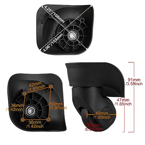 4Pcs Universal Swivel Wheel Right (Big) Suitcase Wheel (4R) 115W Series W041 Wheel Replacement Black 4