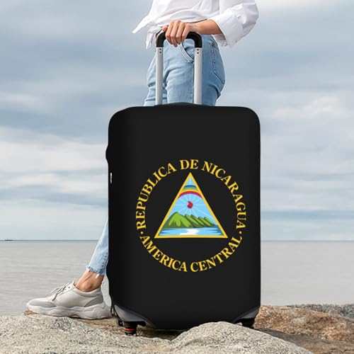 HOT ! Nicaragua National Emblem Travel Luggage Cover Suitcase Protector Fits 18-21 Inch Case(Black,S)