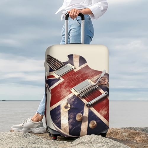 HOT ! Travel Luggage Cover Fashion Suitcase Protector Guitar British Flag Spandex Baggage Covers Washable Suitcase Covers Anti-Scratch Luggage Cover Protectors Fits 18-32 Inch Suitcases Large