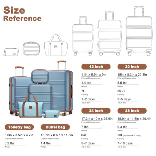 Kono Suitcase Set 3 Piece Luggage Set Expandable(only 28") Carry On Hardside Luggage with TSA Lock Spinner Wheels (Apricot Blue, 6 piece set) 7