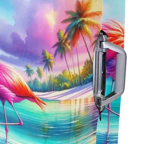Joisal Suitcase Cover Cute Luggage Protector Washable Painting Vacation Essentials Suitcase Sleeve Watercolor Flamingos Beach, S, Fits 18-20 Inch Case 2