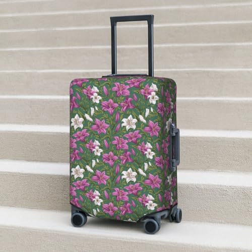 Lily Flowers Pattern Elastic Travel Luggage Covers Dustproof Scratch-Resistant Suitcase Protector Fit 22-24 Inch 1