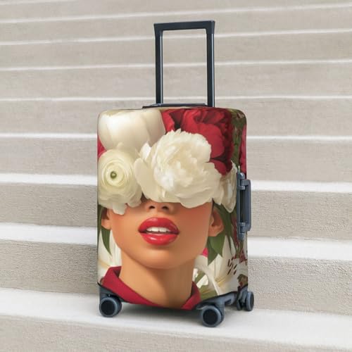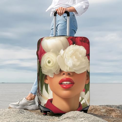 Red Lips Woman Peonies Lilies Flowers Elastic Travel Luggage Covers Dustproof Scratch-Resistant Suitcase Protector Fit 22-24 Inch 6